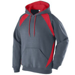 9-ounce 50% cotton/50% polyester smooth athletic fleece * Contrast-color lined hood, front and sleeve inserts * Drawcord in hood on Adult sizes only * Raglan sleeves * Double-needle coverstitched bottom band * Front pouch pockets * 1x1 rib-knit cuffs and bottom band