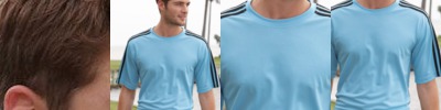 - Three contrast color stripes on shoulders, sleeves
