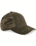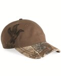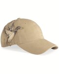 Brushed twill sandwich cap has contrast color stitching, trim and undervisor.