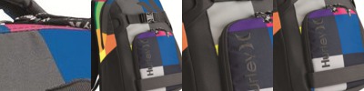 - Front zipper pocket with woven jacquard leash zipper pulls and straps