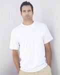 - 4.5 oz., pre-shrunk 100% combed ringspun cotton, 30 singles