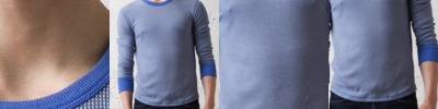 - Fabric laundered, 4.3 oz., 57/38/5 combed ringspun cotton/polyester/spandex, 40 singles