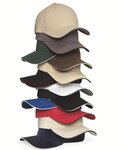 Fitted, six-panel, mid-profile cap is structured with buckram backing.