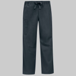 Pull-on style with covered elastic waistband. Two patch pockets and one cell phone pocket. Reinforced seams at stride and inside leg for strength. 65% Polyester/ 35% Cotton Traditional rise. Relaxed hip and thigh. Straight leg.