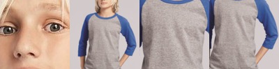 - Contrast color set-in collar and 3/4 raglan sleeves