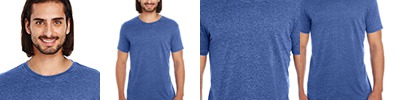 Retail fit Tear-away label Side seamed Shoulder taping Athletic Heather/Black Heather: 4.2-ounce, 90/10 Airlume combed and ring spun cotton/poly, 32 singles Heather CVC/Solid CVC Blend Colors: 52/48 Airlume combed and ring spun cotton/poly Prism: 99/1 Airlume combed and ring spun cotton/poly