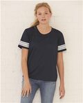 3832 Women's Curvy Retro Ringer Premium Jersey V-Neck Tee