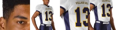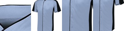 - Two color jersey side inserts, sleeve cuffs and V-neck