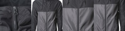 - Convenient chest pocket and two on-seam hand pockets all with zipper closures