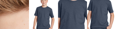 - 50/50 combed ring spun cotton/poly (Heathers, Frosts)