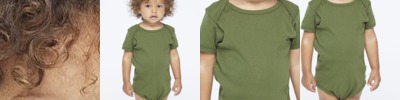 - 3/8" self-fabric trim applied to neckline, sleeves and leg opening