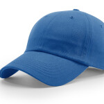 100% cotton twill; relaxed, contoured crown shape; cotton sweatband; pre-curved visor. Adjustable cloth hook and loop back strap: one size