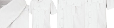 - Two button-thru, hex style pockets with angled bartacks, bartacked pencil stall on left pocket