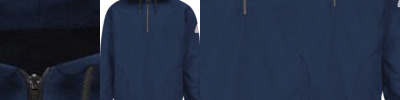 - Concealed snap at top of zipper at neck