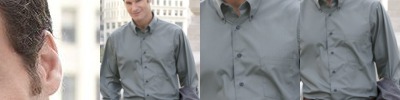 • Two pearlized buttons on adjustable cuff with button-through sleeve placket