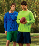 100% polyester • 3.5-oz. • moisture-management/antimicrobial fabric • athletic cut and superior fit • 10" inseam • 2" covered elastic waistband and draw cord • deep side pockets • double-needle hemmed legs • heat seal logo on left hip • Sizes: S-4XL