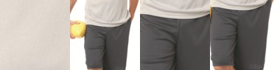 100% polyester • 70 denier mesh with solid tricot liner • Side entry pockets and buttoned back pocket • Athletic cut • Superior fit • Two-inch covered elastic waistband and draw cord • Eight-inch inseam • Sizes: S-4XL