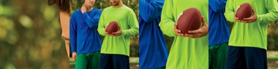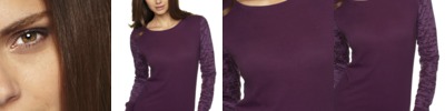 body/neck/cuffs: 36 singles preshrunk 100% combed cotton sheer jersey • burnout sleeves: 30 singles 65% polyester/35% cotton self-fabric neck and cuffs • 3.7-oz. • satin label • Sizes: S-XL
