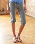 Contoured fit capris have a roll-down waist and slightly flared leg openings.
