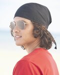 Basic black bandana in cotton twill has pre-formed ties for easy wear.
