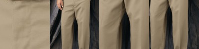 - Two slack-style front pockets, two set-in hip pockets with darts