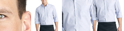 Urban distinction sets this apron apart from the rest. Performance combines with style in the denim-like, wrinkle-resistant fabric.