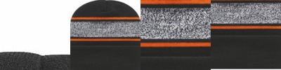 - Circular rib knit construction with darts for shaping on top of crown