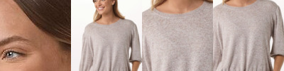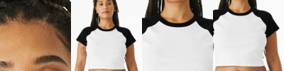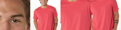 4.8 ounce 50% polyester/50% cotton jersey knit * Tear away label * Crew neck * 3/4" length raglan sleeves * Serged fishtail bottom