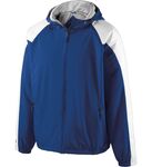 Micron(tm) poly shell, modern and quiet, micro-denier polyester * Athletic heather fleece lining * Woven label * Front zipper * Adjustable hood with eyelets and concealed cord locks on Adult only * Raglan sleeves for maximum mobility * Front zippered pockets * Half-elastic cuffs and bottom * Water-resistant