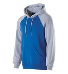 9 ounce 50% cotton/50% polyester smooth athletic fleece * Woven label * Self-lined hood with drawcord on Adult sizes only * Contrast color raglan sleeves and hood * Front pouch pocket * Rib-knit cuffs and bottom band