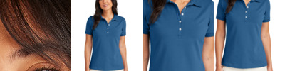 - 4.6-ounce, 95/5 polyester/spandex mesh pique; White is 5-ounce for increased coverage
