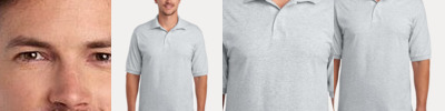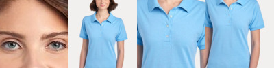 - 4.6-ounce, 95/5 polyester/spandex mesh pique; White is 5-ounce for increased coverage