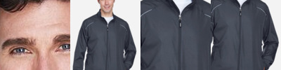 2.8 oz./yd² (US), 4.7 oz./L yd (CA), abrasion-resistant 100% nylon taslan shell with polyurethane coating for enhanced wind- and water-resistance 3 oz./yd² (US), 5 oz./L yd (CA), 100% polyester dyed-to-match tricot big hole mesh lining in body 1.7 oz./yd² (US), 2.8 oz./L yd (CA), 100% polyester taffeta lining in sleeves Roll-away three-piece hood with rain bill Black taping adds contrast to back and sleeves EZEM zipper in back lining for easy decoration access Center front/lower pockets with molded plastic zipper with garage