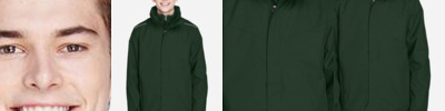 3.9 oz./yd²/132 gsm (US), 6.5 oz./L yd (CA) Shell: 100% polyester twill, with water resistant and cire finish Shell Lining; Polyester taffeta Liner Jacket: 7.7 oz Polyester anti-pill fleece Storm flap with hidden snaps at top and bottom Inside placket; roll-away hood; adjustable cuffs with tabs Lower concealed pocket with zippers and reflective toggles Audio port access through inside left pocket Thermal retention shockcord at hood and drop back hem Reflective piping at shoulder yoke and upper back panels Inside placket on liner Center-front reversible zipper Lower concealed pockets with autolock zippers Audio port access through inside left pocket