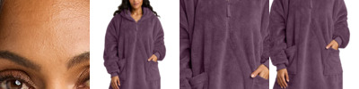 This two-sided brushed fleece poncho is simply fluffy and fun. Perfect for lounging, it offers a warm retreat any time of year.