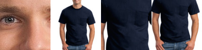 preshrunk 100% cotton jersey • 4.5-oz. • heathers 35% cotton/65% polyester • deluxe 30's Softstyle yarns • seamless double-needle 7/8" collar • taped neck and shoulders • rolled forward shoulders • double-needle sleeve and bottom hems • quarter-turned to eliminate center crease • Sizes: S-2XL, selected colors up to 3XL